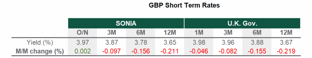 With no BoE meeting in October, all eyes are on the Autumn Budget at the end of November. Weak growth and soft data have heightened speculation that Chancellor Rachel Reeves may need to raise taxes more than expected. August CPI inflation held at 3.8%, below forecasts, while core inflation eased to 3.5%. Services CPI stayed firm at 4.7%, driven by sticky wage dynamics and elevated employer costs. Labour data disappointed, with unemployment holding at 4.8%, reinforcing the case for future rate cuts. On the fiscal front, the Office for Budget Responsibility is expected to downgrade 2025 growth by 0.3%. This downward revision to growth, combined with a failure to push through welfare savings, the rising cost of borrowing and new global trade tariffs, could leave the Chancellor with a £35bn shortfall, according to Bloomberg.