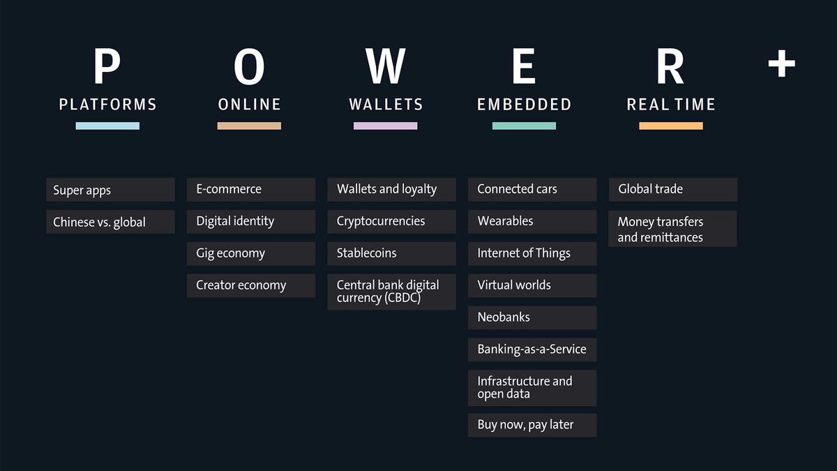 Here, Lubell refers to a whitepaper written by her colleagues, entitled ‘Payments are Eating the World’.[1] “In this epic piece of research, we outline J.P. Morgan’s proprietary POWER+ framework [see fig. 1] which focuses on the mega-themes that are shaping the future of payments. We also explain practical ways for companies to get ahead of these important developments.” To add some context, these mega-themes account for circa $54tr. in global payment flows – and this figure will only continue to grow.