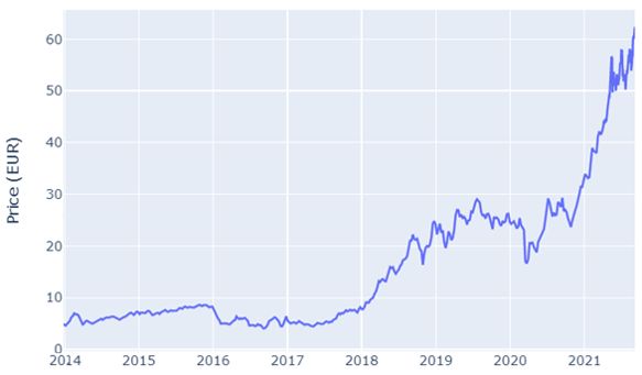 Price of carbon since 2014 (EUR per one tonne CO2)